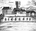 Auf einem sanften Hügelsporn über dem breit aufgeschwemmten Donautal liegt das ovale Bauensemble des ehemaligen Schlossbereichs. Während der Vischerstich von 1674 hinter einer Zinnenmauer mit Eckturm noch zahlreiche Schlossgebäude zeigt, präsentiert sich das Plateau heute in offener dörflicher Bebauung, bei der nur die historischen Ansichten ältere wehrhafte Grundlagen vermuten lassen.