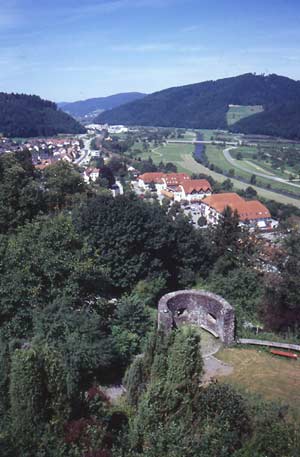 Bei der Burg Hausach handelt es sich vermutlich um eine hochmittelalterliche Gründung der Grafen von Freiburg-Urach. Umstritten ist, ob sich die 1246 erfolgte urkundliche Nennung des "castrum husen" auf die Burgruine über Hausach oder auf eine kürzlich etwa 600 m südlich lokalisierte Burgstelle bezieht. Möglicherweise stellt die Burgruine eine Mite des 13. Jh. errichtete Nachfolgeanlage der zerstörten Burg dar. Unter Heinrich VI. von Fürstenberg (1432-1491) erfolgte eine tiefgreifende bauliche Umgestaltung der Burg. Im 15. Jh. wurden das jetzige Hauptgebäude, der Vorhof (1466), ein Zwinger (1467) sowei weitere Bauten aufgeführt. Infolge des Stadtbrandes von Hausach verzögerte sich die Fertigstellung des Turmes bis zum Jahr 1677. Im Dreißigjährigen Krieg wurde die Burg 1643 zerstört und blieb Ruine. Der Zinnenkranz sowie der ebenerdige Eingang in den Bergfried legen Zeugnis von einer ersten Sanierung der Anlage in den Jahren 1890/91 ab. 1911 setzte man den sogenannten Batterieturm instand. Bergfried und Palaswand wurden 1985-1989 saniert. (H.W.; J. F.)