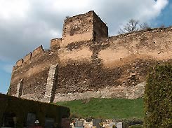 Die auf der Terrasse südöstl. der Burg situierte Pfarr- und ehem. Burgkirche Hl. Gertrud, die am urspr. Torweg lag, lässt neben einer komplexen Baugeschichte Bauteile des 12. Jhs. im W-Bereich erkennen. Der W-Bereich mit ehem., durch offene Bogenstellungen gekennzeichneter Herrschaftsempore und Glockengeschoß mit Biforenfenstern zeigt den urspr. Herrschaftsanspruch und die Beziehung zur Burganlage.
