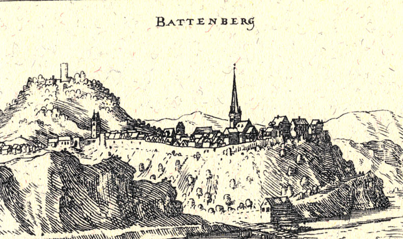 Wirkungsvoll über dem Edertal erhebt sich zwischen Biedenkopf und Frankenberg auf einem Bergsporn die historische Altstadt von Battenberg mit den wenigen baulichen Resten der gleichnamigen Burg sowie oberhalb der Stadt die Ruine der Kellerburg. Die Anfänge der Burg Battenberg reichen in das ausgehende 12. Jahrhundert zurück und sind eng mit der Geschichte des gleichnamigen, bereits 1314 erloschenen Grafenhauses verbunden. Seit 1231 bildete Battenberg den Hauptort der gleichnamigen Grafschaft, die ursprünglich einen Bestandteil der Grafschaft Stiffe (1238 erwähnt) bildete, die ihrerseits auch das Territorium der Grafen von Wittgenstein umfasste. Die Burg zu Battenberg wird in den Schriftquellen erstmals 1214 erwähnt und ist offensichtlich älter als die unweit entfernt auf dem Gipfel oberhalb der Stadt gelegene Kellerburg. 1234 gelangte Battenberg mit seinen beiden Burgen zur Hälfte an das Erzstift Mainz, das schließlich durch Kauf 1296 in den alleinigen Besitz des strategisch günstig gelegenen Ortes gelangte. Das rheinische Erzstift hatte mit Battenberg einen wichtigen Stützpunkt gegen die 1233/34 gegründete landgräflich-hessische Stadt Frankenberg an der Eder inne. Im Spätmittelalter bildete Battenberg den Mittelpunkt eines kurmainzischen Amtes. Nach einer zeitweiligen Verpfändung gelangte Battenberg 1583 schließlich endgültig an die Landgrafschaft Hessen und 1604 an Hessen-Darmstadt. Im Unterschied zu der Kellerburg, die wohl 1464 in Verfall geriet - historische Ansichten des 16. Jahrhunderts zeigen die Kellerburg bereits als dachlose Ruine - wurde Burg Battenberg noch bis in die zweite Hälfte des 18. Jahrhunderts baulich unterhalten. Die Gebäude legte man 1779 nieder. (J.F.)