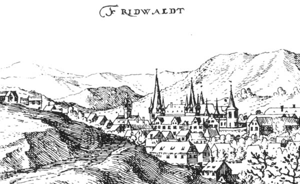 Während der Kenntnisstand über die erste 1317 urkundlich erwähnte Wasserburg zu Friedewald gering ist, liegen zu dem 1480 bis 1489 entstandenen Neubau umfangreiche Archivalien vor, die es ermöglichen, die bauliche Entwicklung nachzuvollziehen. 1482-85 wurden die Gräben durch Grabenarbeiter aus Ziegenhain erstellt und 1487 erfolgte die Weihe des Altars im Saal der Burg durch den Bischof von Würzburg. Im Zuge von Ausgrabungen, die 1983 im Kernburgbereich stattfanden, stieß man auf die Fundamente dünnwandigen Mauerwerks eines Gebäudes, das mehrere Innenwände aufwies. Vermutlich datieren diese Reste in das ausgehende 13. oder beginnende 14. Jahrhundert. Es könnte sich um eine "Kemenate" gehandelt haben. In der Rechnungsüberlieferung zum Neubau ist von einem "alten Bau" die Rede, der 1485 niedergelegt wird. Inititiator der Baumaßnahmen des ausgehenden 15. Jahrhunderts war der hessische Landgraf Heinrich III., der mit dem Neubau den Hofbaumeister Hans Jakob von Ettlingen beauftragte, der in Friedewald eine moderne, der fortifikatorischen Entwicklung des ausgehenden 15. Jahrhunderts angemessene Kastellburg mit vier runden Geschütztürmen schuf. Die imposante Hauptburg, die auffallende Parallelen zu der ebenfalls von Ettlingen errichteten Burg Herzberg aufweist, wurde 1762 zerstört. Bauliche Veränderungen erfolgten 1550-1560 unter Landgraf Moritz von Hessen (reg. 1592-1627). Während seiner Regentschaft entstanden zwei parallele, den geräumigen Hof der Vorburg flankierenden Renaissanceflügel, die Anfang des 17. Jahrhunderts um drei Fensterachsen nach Osten verlängert und mit je einem Treppenturm versehen wurden. Ebenfalls in das beginnende 17. Jahrhundert datiert ein prächtiger, Wilhelm Vernukken zugeschriebener Brunnen im Vorhof. Das Erscheinungsbild des Vorhofes wurde jedoch entscheidend durch einen Neu- bzw. Erweiterungsbau des Hotels 1995-1997 und 1999 verändert. (J.F.)