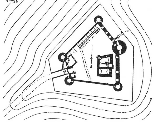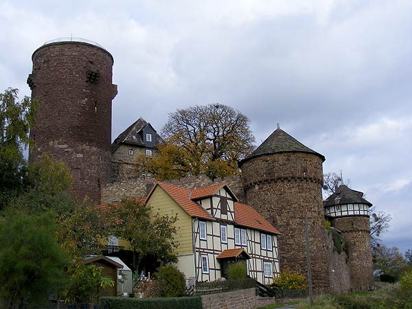 Zur baulichen Entwicklung der 1303 erstmals genannten Burg der Herren von Schöneberg in Trendelburg lassen sich keine zuverlässigen Aussagen machen. Aus der Gründungszeit stammt der untere Teil des mächtigen runden Bergfrieds der Burg. An die Stelle der Schöneberg`schen Burg trat nach einem Brand der Anlage 1443 bis 1456 ein burgenbaulich bemerkenswerter Neubau. Unter den Landgrafen von Hessen entstand eine regelmäßige fünfeckige Kastellburg mit vier für den frühen Artilleriekampf vorgesehenen Flankentürmen und dem im stumpfen Winkel an der Westseite gelegenen runden Bergfried. Ebenfalls in die Mitte des 15. Jahrhunderts datiert der hinter der nordwestlichen Ringmauer aufgeführte mehrgeschossige Wohnbau, dessen Innenräume 1901 und 1949 zu Wohn- bzw. Hotelzwecken teilweise umgestaltet wurden. 1958 erfolgte der Anbau einer geschlossenen Terrasse. Weitere kleinere bauliche Zutaten des 20. Jahrhunderts fallen kaum ins Auge. Zu diesen baulichen Veränderungen gehört u. a. die Anlage einer Fußgängerpforte zur westlich gelegenen Stadt, die durch eine den Halsgraben überquerende Brücke erschlossen wird. Der ursprüngliche Zugang zur Burg liegt an der gegenüberliegenen Ostseite. (J.F.)