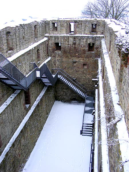 Südlich der historischen Altstadt von Grebenstein erhebt sich auf einem Basaltkegel die stattliche Ruine der gleichnamigen Burg. Die Ringmauer ist nur noch an einigen Stellen nachvollziehbar. Besser erhalten, 1950 und 1991 gesichert und mit einer Aussichtsplattform versehen, ist die wohl vor 1400 erbaute Kemenate, die bei einer Länge von 38 m eine Breite von 12 m erreicht und vier Geschosse aufweist. An der Hofseite befinden sich der ebenerdige Eingang und in den ersten beiden Geschossen teilweise Steinkreuzfenster. Das ab 1509 als Fruchtspeicher genutzte Gebäude verfügte in der östlichen Hälfte über eine Küche und in den obersten Geschossen offenbar über Säle. Ein gekuppeltes Fenster an der Südseite ist vermutlich ein Indiz für die dort vorhandene Burgkapelle. 1991 wurde die Kemenate als Aussichtsplattform durch eine Treppenanlage im Inneren erschlossen. (J.F.)