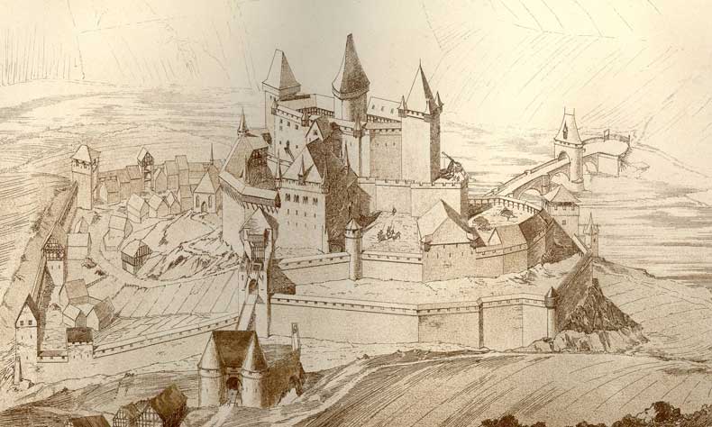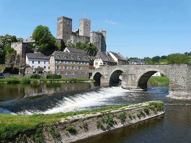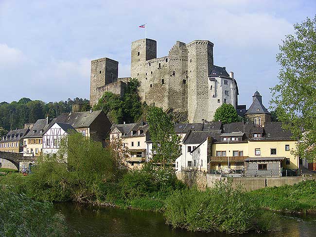 Die Anfänge der Burg Runkel reichen bis in die Mitte des 12. Jh.s zurück. Einen ersten indirekten Hinweis auf die Existenz der über einem wichtigen Lahnübergang gegründeten Burg bietet die urkundliche Ersterwähnung des Siegfried von Runkel im Jahr 1159. Als Lehnsträger der Grafen von Nassau begegnen die Herren von Runkel und Westerburg seit 1258 als Inhaber der Herrschaft zum Westerwald. Vermutlich agierten sie dort bereits vor 1159 als Vögte des Reichs, ehe die Grafen von Nassau von den Landgrafen von Hessen und Thüringen mit dem Reichslehen der Herborner Mark auch Besitzungen auf dem Westerwald an sich gebracht hatten. Es ist anzunehmen, dass die Herren von Runkel die Burg im Auftrag des Reiches angelegt haben. Noch vor 1191 gelangte die Herrschaft Westerburg als Mitgift an Siegfried II. von Runkel. 1280 erfolgte im Zuge von Erbauseinandersetzungen zwischen Siegfried V. von Runkel und seinem Vetter Heinrich die Gründung der Burg Schadeck an dem Runkel gegenüberliegenden Lahnufer. 1288 erfahren wir aus den Schriftquellen, dass die Herrschaft geteilt wurde und sich zwei Linien zu Runkel und Westerburg entzweiten. Eine Talsiedlung unterhalb der Burg Runkel wurde 1315 mit Stadtrechten versehen und erfuhr durch die Anlage eines zweiten Mauerrings im 15. Jahrhundert eine Erweiterung. Die am unteren Mittelrhein und im rheinischen Westerwald gelegene Grafschaft Wied zählt zu den bedeutendsten territorialen Zuwächsen der Herren von Runkel. Die Ehe des Grafen Wilhelm von Wied mit Philippa von Loon-Heinsberg blieb ohne Nachkommen, so dass er 1454 Friedrich von Runkel, dem Enkel seines Bruder Johann 1454 Burg und Talsiedlung Altwied, Burg und Herrschaft Braunsberg sowie seinen Anteil an der Isenburg im Saynbachtal übertrug. 1462 gelangte die Grafschaft Wied endgültig an Friedrich von Runkel. Im Zuge einer Erbteilung entstanden 1595 zwei Teilgrafschaften, die Niedergrafschaft (Wied-Neuwied) und die Obergrafschaft (Wied-Runkel). Verwaltungszentrum und Regierungssitz der Obergrafschaft wurde die Burg Runkel, die insbesondere im Dreißigjährigen Krieg erhebliche Schäden erlitt und 1634 von Kroaten niedergebrannt wurde. Im Unterschied zur Oberburg, die Ruine blieb, wurde die sogenannte Unterburg wieder hergestellt. 1791 wurde die zu Runkel ansässige Linie mit Graf Christian Ludwig in den Reichsfürstenstand erhoben. Das Territorium fiel 1806 an Nassau. Nach dem Tod von Friedrich Ludwig, mit dem das Fürstenhaus Wied-Runkel erlosch, gelangte Burg Runkel an Fürst Johann August Karl von Wied-Neuwies. Die Burg befindet sich bis zum heutigen Tage in wiedischem Besitz und ist teilweise als Museum zugänglich. (J.F.)