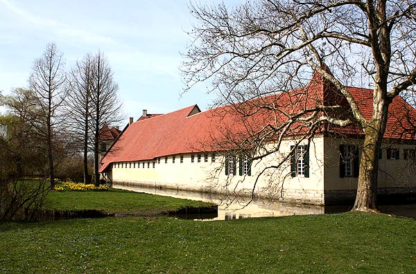 Das heutige Herrenhaus ist von 1666-1685 durch den Architekten Pictorius d. Ältere an der Stelle eines abgebrannten Vorgängerbaus unbekannten Aussehens errichtet worden. Die niedrigeren Seitenflügel mit Ecktürmen im Osten sind spätere Hinzufügungen über älteren Kernen, im Nordflügel befindet sich eine Kapelle aus dem Ende des 17. Jhs. Das Hauptgebäude wurde 1841 modernisiert und verändert. Die Wirtschaftsbauten auf der Vorburg stammen noch aus dem 17. Jh., lediglich der Mittelbau des Nordflügels ist im 19. Jh. erneuert worden. (S.E.)