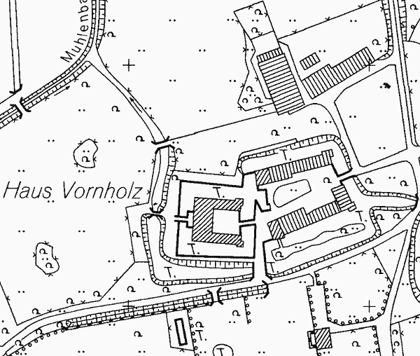 Es gibt keine Belege für die Existenz der Burg vor 1300, der Sitz der seit 1172 erwähnten Ritter von Ostenfelde war wohl an anderer Stelle. Die Burg soll um 1300 durch Heinrich Vincke de Ostenfelde gegründet worden sein. In der Folge gehört die Burg den Herren von Ennichloe, den Herren von Elspe, den Herren von Wettbergen und Albert von Schulz, der sie 1656 an Dietrich Hermann von Nagel verkaufte. Dieser änderte ihren Namen von Varenholte zu Vornholz. (S.E.)
