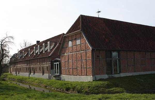 1787 bestand die Burg aus einerZweiinselanlage mit einer Gräfte um die 50 x 50 m große Hauptburg und einer um die Gesamtanlage; außerdem einer Wallanlage, Zugbrücke, Hauptgebäude, Brennerei, Brauhaus, Vieh, Schweine- und Schafstall, Schuppen und einer Kapelle am Hofeingang. Die Gebäude der Gutsanlage von 1805 wurden seitlich versetzt auf dem Wall der ehemaligen Burg errichtet. (S.E.)
