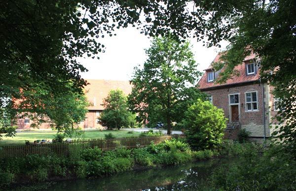 Im frühen 14. Jh. wird Haus Wiek als Wasserburg im Besitz der Familie von Cleyhorst erwähnt, die es vom Stift St. Mauritz in Münster zum Lehen hatte.1519 ging es an die Familie von Schenking und 1770 an die Freiherren von Wrede. Seit 1854 gehört die Anlage den Grafen von Korff-Schmiesing zu Tatenhausen. (S.E.)