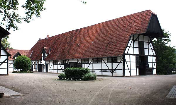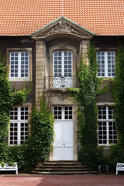 Der Mitteltrakt und der linke Flügel des heutigen Hauptgebäudes stammen aus dem Jahr 1692, sind aber im Kern älter. Baumeister war vermutlich Peter Pictorius der Ältere. Um 1755 baute Johann Conrad Schlaun die Anlage um, vermutlich stammen auch der westliche Seitenflügel und die Ecktürme von ihm. Die Nebengebäude sind um 1700 errichtet. (S.E.)