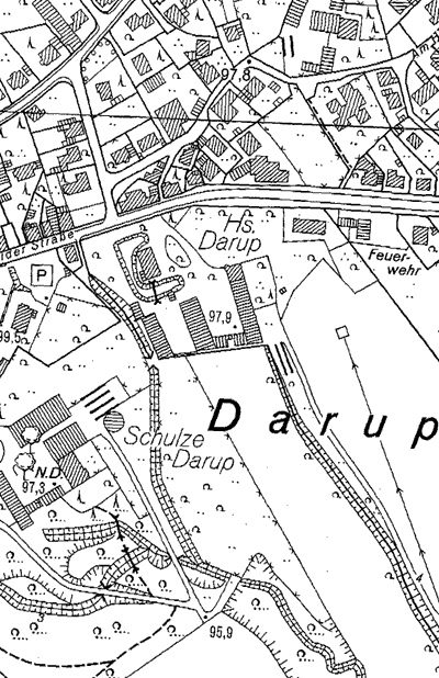 1315 wird erstmals ein Ritter Bernhard von Dodorpe erwähnt. Er war bischöflicher Amtmann und gehörte dem Deutschen Ritterorden an. 1328 überließ er Haus Darup seinem Sohn Albert. Am Ende des 14. Jhs. gehörte es der Familie von Kemenaden und ging kurz darauf an die Familie von Burse. Im 15. Jh. und auch später wird das Haus Darup meist Kemenade genannt. Illisch hält es deshalb für möglich, dass sich das Haus ursprünglich auf einem Burghügel hinter dem Hof Schulze Darup befand und erst im Zuge eines Neubaus der Familie Kemenade an seinen heutigen Ort verlegt wurde. Spätere Besitzer von Haus Darup waren das Kloster Weddern, die Herren von Raesfeld, die von Kückelsheim zu Rorup und ein Zweig der von Droste, die sich dann von Droste zu Darup nannten. Durch Heirat gelangte das Haus 1714 in den Besitz der Freiherren von Bönninghausen. Diese Familie blieb bis 1929 Eigentümer des Hauses Darup, als es an den Fabrikanten Bernhard Frisch fiel, der es als Wochenend- und Sommersitz mit seiner Familie bewohnte. 1939 wurde von der Familie Struwe erworben, in deren Besitz sich das Haus noch heute befindet. (S.Eismann)
