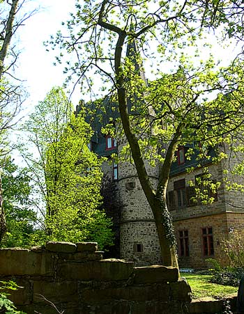 Schweinsberg gehört wohl ursprünglich zu dem Reichsgutkomplex um Amöneburg und gelangte Ende des 12. Jh. über die Reichsvögte von Merlau durch Heirat an die landgräflich thüringischen Ministerialen von Schweinsberg, die auf dem Basatkegel über dem Ort 1231 bis 1234 ihre Stammburg errichteten. Um 1239 erlangten die Herren von Schweinsberg das Erbschenkenamt der Landgrafen von Hessen-Thüringen und führten seitdem in den Schriftquellen den Namen Schenken zu Schweinsberg. Im Spätmittelalter wurde das Stammhaus zu einer Ganerbenburg, an der mehrere Familienzweige Anteil hatten. Burgfriedensverträge lassen sich beispielsweise für die Jahre 1447 und 1466 nachweisen. Die strategisch außerordentlich bedeutsame Lage ihrer Stammburg zwischen dem mainzischen Amöneburg und dem landgräflich-hessischen Homburg nutzten die Schenken von Schweinsberg geschickt aus, um durch wechselnde Allianzen mit beiden Seiten ihre eigene Position zu stabilisieren und ihre Unabhängigkeit zu wahren. Der vor 1264 planmäßig angelegte Ort unterhalb der Burg erlangte 1332 Stadtrechte. Etwa zur gleichen Zeit wurde offensichtlich die Burg durch die heute innere Zwingermauer erweitert. Ein weiterer Ausbau zur Verteidigung und Abwehr von Artillerie des späten Mittelalters fand um 1482 durch den hessischen Hofbaumeister Hans Jakob von Ettlingen, statt, der u. a. in Marburg, Friedewald, Herzberg, Münzenberg und Wolkersdorf tätig war. Darüber hinaus erfolgte 1459-97 der Bau der "Neuen Kemenate", die 1635 niederbrannte und 1637 erneuert wurde. Weitere Bauten entstanden in der ersten Hälfte des 16. Jh. (Fähnrichsbau). Im Dreißigjährigen Krieg wurden Burg und Stadt Schweinsberg durch kaiserliche Truppen belagert und 1646 bis auf die Kirche und einige wenige Häuser zerstört. Diesem Ereigniss fiel auch die Oberburg zum Opfer, die Ruine blieb. Letzte bauliche Eingriffe erfuhr die Anlage Mitte des 19. Jh. (Neue Kemenate). Bis heute befindet sich die imposante Burganlage im Besitz der Schenken von Schweinsberg. (J.F.)