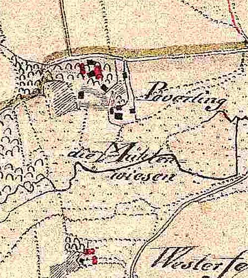 Der Standort der in der ersten Hälfte des 14. Jahrhunderts entstandenen Burg der niederadeligen Familie von Peveling ist nich eindeutig zu lokalsierien. Vermutlich ging die als Adelssitz bereits Ende des 14. Jahrhunderts aufgegebene Anlage in einem Hof auf. Heute befinden sich am vermeintlichen Standort der Burg moderne Hofgebäude inmitten von Weideland. (Jens Friedhoff)