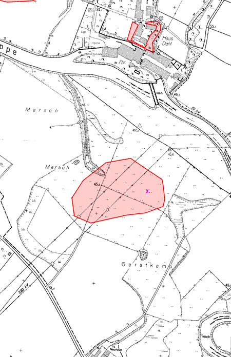 Der Überlieferung nach hat sich der Vorgänger des Adelssitzes Dahl (Gemeinde Selm) südlich der Lippe befunden. Vermutet wurde, dass die Reste der sog. Burgstätte (Gemeinde Datteln) diese Vorgängeranlage markieren, doch sprechen gute Gründe dafür, diese bislang unbekannte Burgstelle in der Lippeniederung mit dem älteren Haus Dahl gleichzusetzen, das zuerst in einer Aufzeichnung der Besitzungen der Grafen von Dale um 1188 als "Castrum Dale" erwähnt wird. Neben diversen Besitzungen der Grafen von Dale werden die "curia de Dalen" sowie ein "Vorwerk de Dalen" zu Beginn der Aufzeichnungen genannt. Es ist davon auszugehen, dass sich die Burganlage in nicht allzu weiter Entfernung von diesen Besitzschwerpunkten befunden hat. Während der Hof Forck in der Heimatliteratur mit dem Vorwerk von 1188 identifiziert wird und auch später noch die Fährverbindung über die Lippe auf diesen Hof ausgerichtet war, könnte der wenig entfernte Schultenhof Renstringhausen, der ursprünglich zu Dahl gehört haben soll, mit dem Oberhof Dahl gleichzusetzen sein. Beide Höfe umgeben die zweiteilige Wallanlage, die demzufolge sehr viel stärker auf die Höfegruppe ausgerichtet gewesen wäre als die nördlich davon gelegene Burgstätte. Westlich der genannten Dahler Höfe schloss sich die Dahler Heide an, wohl ebenfalls benannt nach dem älteren Haus Dahl.