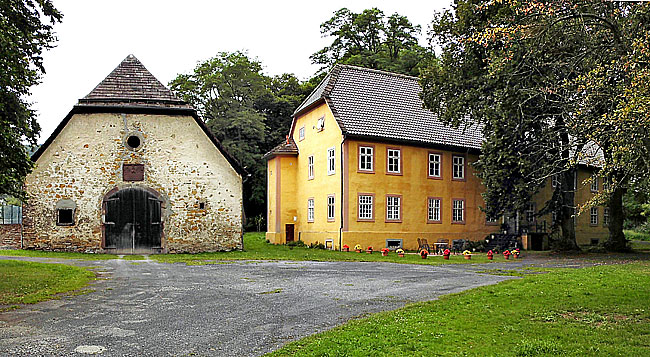 Unweit dieses Gebäudeensembles entstand 1777 das neue Herrenhaus, ein verputzter Fachwerkbau mit Krüppelwalmdach Über der Tür befindet sich das Allianzwappen. Ebenfalls aus dem endenden 18. Jahrhundert stammt der große Schafstall. Außerhalb des eigentlichen Burggeländes liegt die um 1800 um- und ausgebaute ehemalige Wassermühle mit ihrer weitgehend unversert gebliebenen technischen Ausstattung. (Gabriele Rustemeyer)