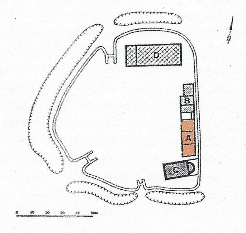 1935 Ausgrabung an der Befestigung durch U. Kahrstedt.