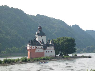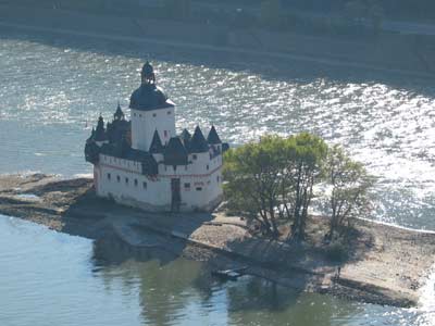 Zwischen 1277 und 1291 hatte der rheinische Pfalzgraf Ludwig II. aus dem Hause Wittelsbach, die dieses Pfalzgrafenamt seit 1214 ausübten, den gesamten Besitz zu Kaub mit der gleichnamigen Burg und den lukrativen Zollrechten von den Reichsministerialen von Bolanden-Falkenstein erworben. Als Initiator der auf einer Rheininsel gelegenen Zollburg gilt Kaiser Ludwig der Bayer. Ungeachtet der Proteste der rheinischen Erzbischöfe und eines päpstlichen Bannspruchs ließ er auf einem der Stadt Kaub vorgelagerten Felsriff inmitten des Rheins 1326/27 einen Turm errichten und diesen um 1337/39 zusätzlich durch eine sechsseitige Ringmauer mit Wehrgang verstärken. 1803 bis 1866 gehörte der Pfalzgrafenstein zum Herzogtum Nassau, dann zum Königreich Preußen, das die Zollerhebung schließlich einstellte. Heute befindet sich die Burg Pfalzgrafenstein im Besitz der Staatlichen Schlösserverwaltung Rheinland-Pfalz (Burgen Schlösser Altertümer). Geschichtliche Bedeutung erlangte der Pfalzgrafenstein schließlich durch den Rheinübergang des Generals Blücher in der Neujahrsnacht 1813/1814. (Reinhard Friedrich)