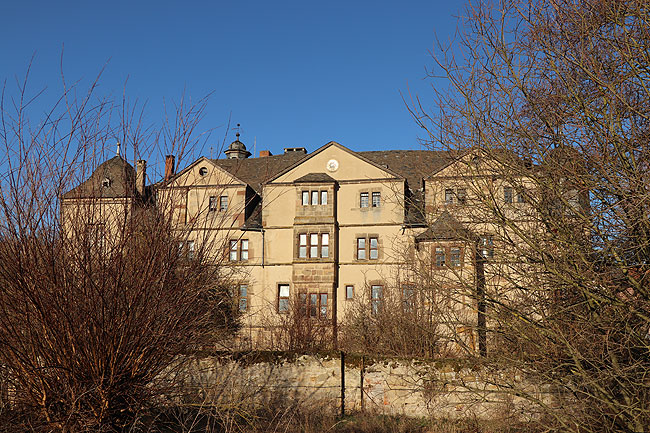Bei dem Schloss handelte es sich ursprünglich um eine Dreiflügelanlage, an deren durch eine Mauer abgeschlossene Nordseite 1881 ein Wirtschaftsgebäude mit rundem Treppenturm errichtet wurde.