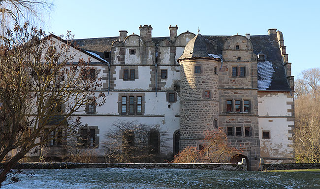 Die Burg liegt an der Stelle der 1123 erstmals urkundlich erwähnten Wüstung "Egelmareshusen", die Eigentum der Grafen von Everstein und ab 1408 ihrer Nachfolger, der Herzöge von Braunschweig-Lüneburg, war. Im 14. Jh. erwarben die Herren von Gudenberg nach und nach das Dorf und die dazugehörigen Rechte. Mit dem Bau des Schlosses wurde 1442 durch Heinrich von Gudenberg an der Stelle der "Stegemollen" begonnen. Im Gegenzug für die Erteilung der Erlaubnis für den Bau ließ sich Landgraf Ludwig von Hessen das Öffnungsrecht einräumen. 1471 war das Schloss noch nicht vollendet. 1515 erwarb Hermann von der Malsburg, der Hof- und Landmarschall des Landgrafen Philipp von Hessen, das Schloss. Nach dem Erlöschen der Familie von Gudenburg 1534 wurde er durch den Herzog von Braunschweig auch offiziell mit ihm belehnt. Der Familie von Malsburg gehört das Schloss noch heute. (Stefan Eismann)