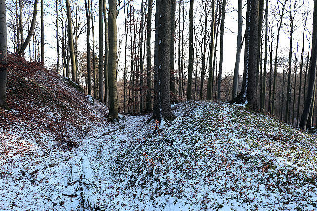 Westlich der Anlage liegt die Töpfereiwüstung Igelsburg, von der Keramikfunde von der Mitte des 13. Jhs. bis zum 1. Viertel des 14. Jhs. stammen. (Stefan Eismann)