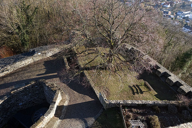 Nach einer späteren Chronik ist die Burg 1219 während dieses Konfliktes zerstört worden. Wahrscheinlich im Jahr 1231 wurde die Stadt Homberg gegründet. Nach dem hessisch-thüringischen Erbfolgekrieg von 1247 bis 1264 fiel die Burg an die Landgrafschaft Hessen. Hessische Burgmannen sind seit 1264 belegt. 1467 schlossen die landgräflichen Brüder Ludwig II. und Heinrich II. einen Vertrag, laut dem sie die Burg als gemeinschaftlichen Besitz zur Aufbewahrung ihres Archivs nutzen wollten. In den folgenden Jahren wurde die Burg dem dritten Bruder Hermann, dem späteren Erzbischof von Köln, als lebenslängliche Leibzucht übergeben. Nach seinem Tod 1508 fiel die Burg an die Landgrafen zurück. Im Dreißigjährigen Krieg wurde das Schloss jeweils 1636 und 1648 belagert und zerstört. Das Ruinengelände wurde 1832 der Stadt Homberg übergeben. (Stefan Eismann)