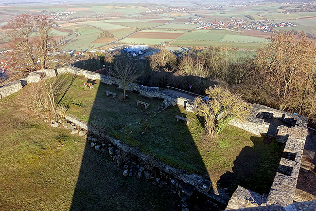 Die in der 2. Hälfte des 12. Jhs. errichtete Burg war 1376 baufällig, denn damals musste sie erst renoviert werden, bevor der neue Amtmann sie als bewohnbar empfand. 1431 brennt der Bergfried nach einem Blitzschlag ab. Der Palas wurde in der 2. Hälfte des 15. Jhs. vergrößert. 1461 wurde eine "Kemenate mit vorspringendem Erker" fertiggestellt. 1465/66 ließ Landgraf Ludwig II. auf der Burg ein neues Haus errichten, zudem wurde kurz darauf ein zusätzlicher Graben mit Dornverhau um die Ringmauer angelegt. Erzbischof Hermann von Hessen ließ zwischen 1504 und 1508 den Palas abbrechen und als Renaissanceschloss neu aufbauen. Zwischen 1605 und 1613 ließ Landgraf Moritz für 25.000 Gulden den Brunnen graben. 1607 wurde der Palas erneuert. Zu Beginn des Dreißigjährigen Kriegs wurde zum Schutz des Haupttores eine Bastion errichtet und die Burg mit einem Palisadenring umgeben. Im weiteren Kriegsverlauf wurde sie 1636 durch bayerische Truppen zerstört. Einer Neubefestigung 1647 durch kaiserliche Einheiten folgte ein Jahr später die Beschießung durch hessische Artillerie. Die Burg blieb danach Ruine. Die Befestigungswerke wurden geschleift und der Brunnen mit Bauschutt verfüllt.