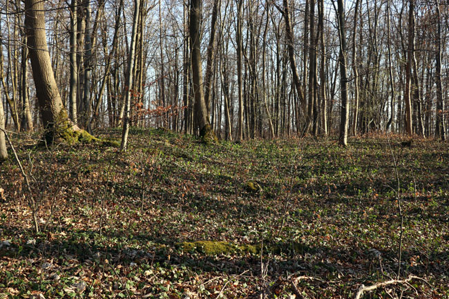Lesefunde von gebranntem Hüttenlehm, einem bearbeiteten Sandsteinquader und Keramik des 13. Jhs.